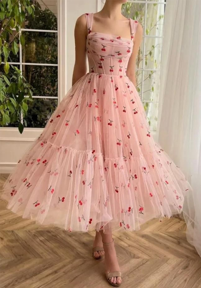 Strap Floral A-Line Mesh Short Party Dress For Women(Processing time need 3-6 days)