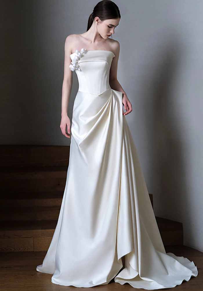 Strapless Wedding Dress Chic Bridal White Luxurious Satin Evening Dress(Processing time need 3-6 days)