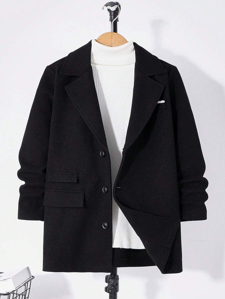 Tween Boy Casual Collegiate Contrast Tape Fake Pocket Mid-Length Coat Jacket, Suitable For Autumn, Spring And Winter, Suitable For Outdoor Play, School, Street, Party And Home Leisure, High Cost-Performance