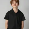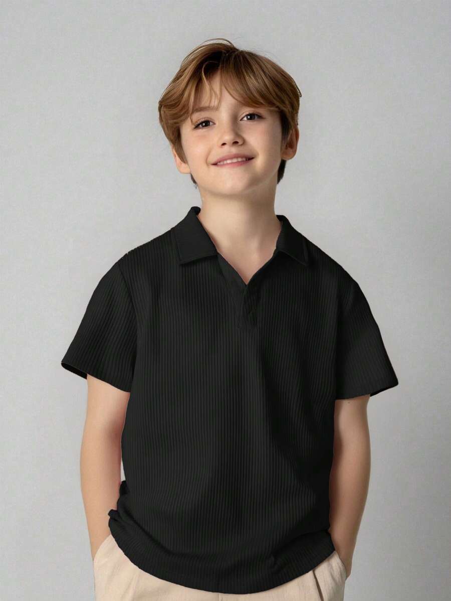 Tween Boy Casual Korean Style Simple Textured Fabric Polo Collar Short Sleeve T-Shirt, Suitable For Commuting, School, Daily Leisure, Sports, Spring/Summer
