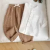 Tween Boy Casual Textured Fabric Short Sleeve Shirt And Long Pants Set With Pockets, Suitable For Commute, School, Daily, Vacation, Leisure, Sports, Spring/Summer