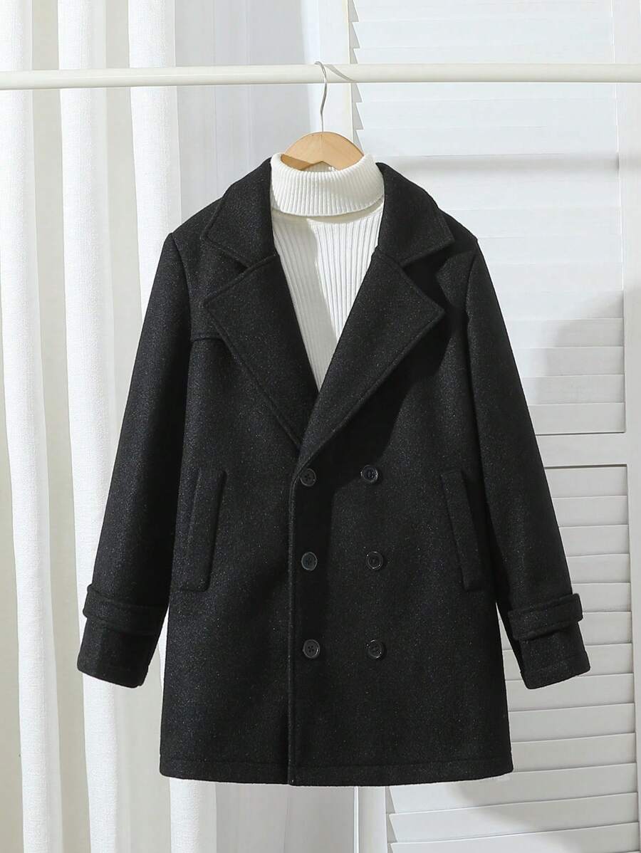 Tween Boy Elegant Gentlemanly Overcoat For Older Boys, Simple Double-Breasted Design, Notch Lapel, Soft & Comfortable Fabric, Suitable For Autumn & Winter, Can Be Easily Paired With Other Items For Stylish & Versatile Look, Ideal For Parties, Holidays, School Events And Everyday Wear,Holiday,Summer,Travel