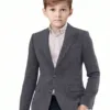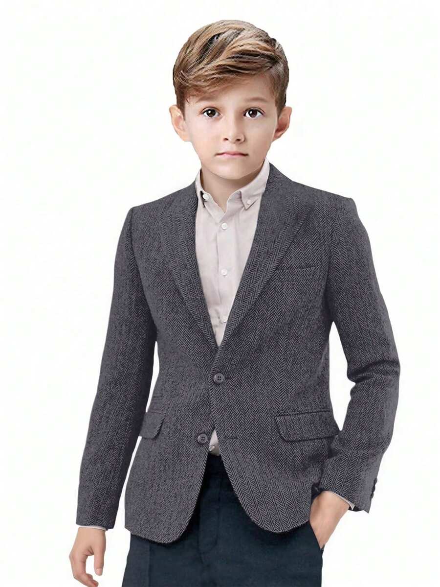 Tween Boy Herringbone Lapel NeckSingle-Breasted Long Sleeve Blazer In Charcoal Gray