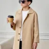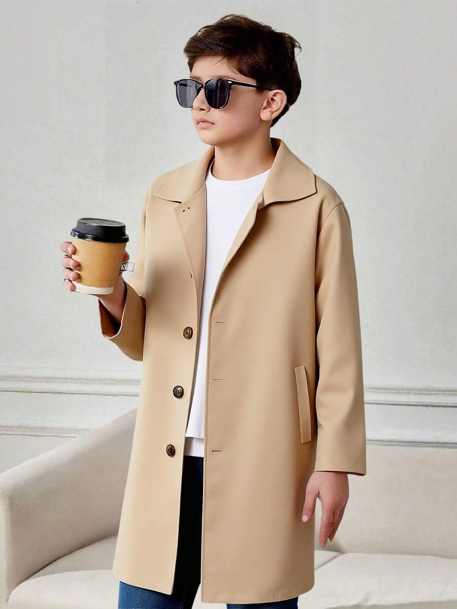 Tween Boy Mid-Long Length Casual Lapel Loose Trench Coat, British Style Single-Breasted
