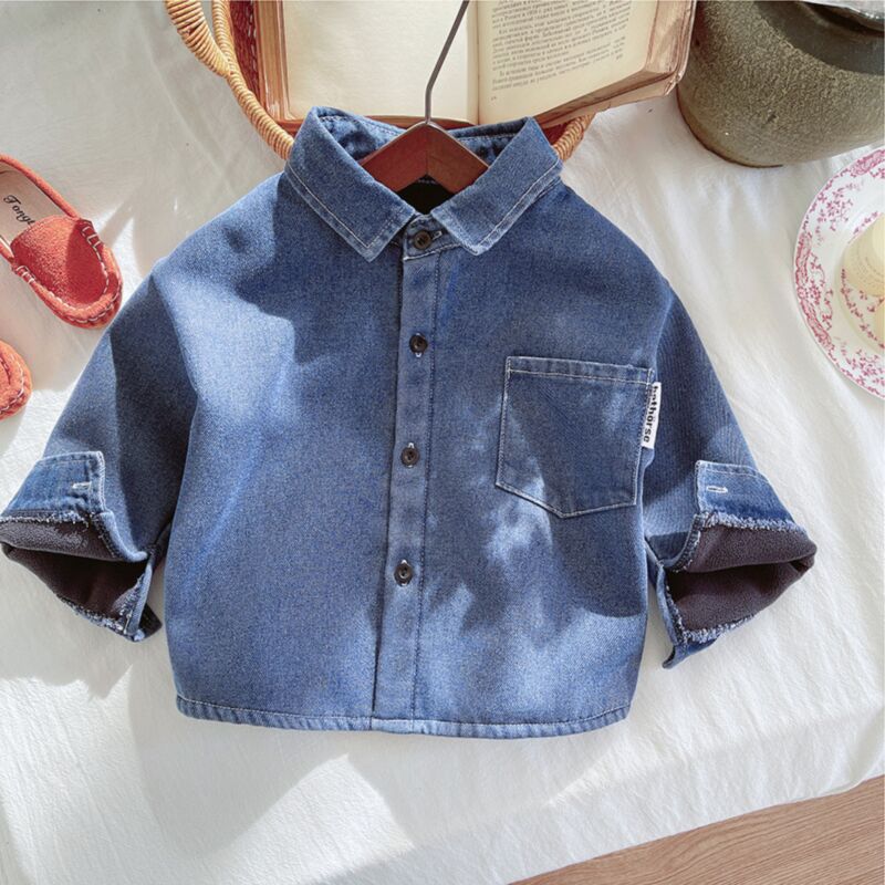 Wholesale 12M-5Y Toddler Fleece Denim Shirts For Boys W