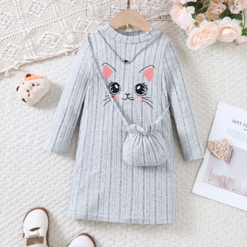 Wholesale 2-7Y Toddler Girls Autumn Knitted Striped Cat