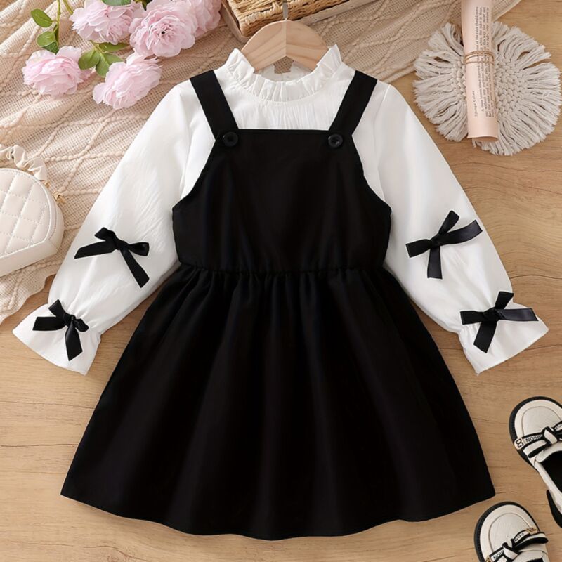 Wholesale 3-10Y Kids Girls Bow Ruffled Collar Long Slee