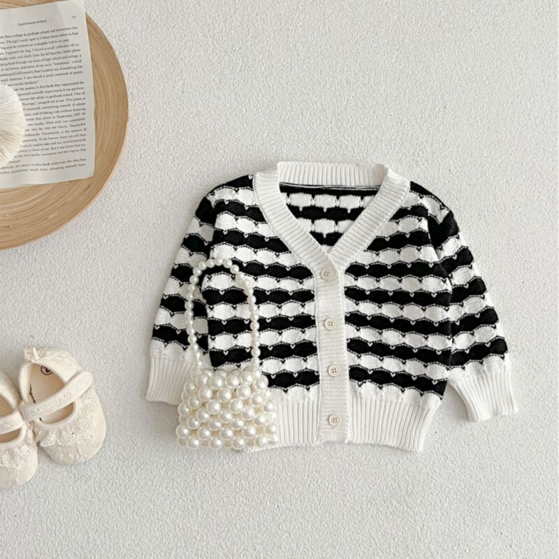 Wholesale 3-24M Baby Striped V-Neck Knitted Cardigan Sw