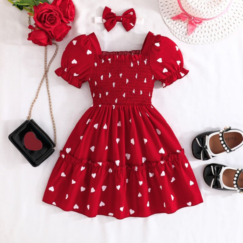 Wholesale 3-7Y Toddler Girls Heart Print Puff Sleeve Bo