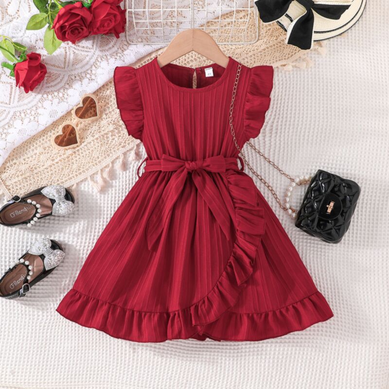 Wholesale 3-7Y Toddler Girls Solid Color Flying Sleeve