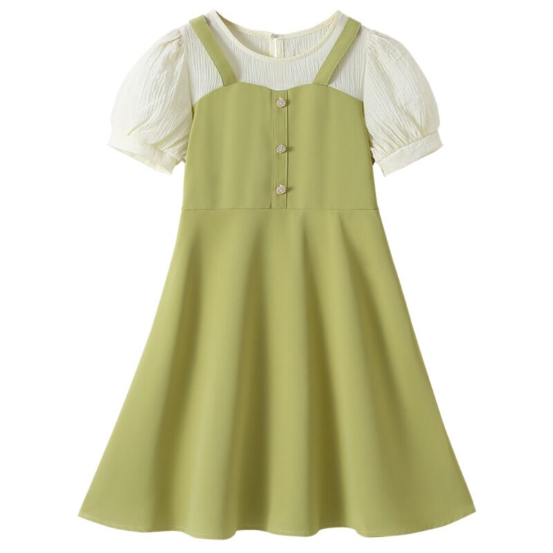 Wholesale 4-10Y Kids Girls Imitation Ice Silk Fake Two-