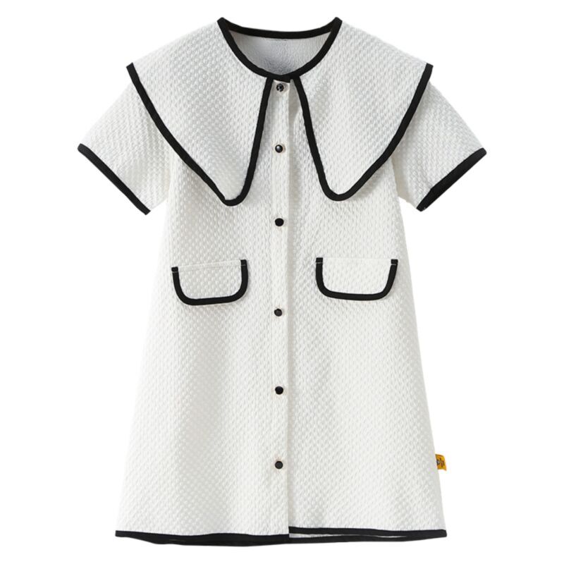 Wholesale 4-10Y Kids Girls Lapel Button-Up Contrast Pla