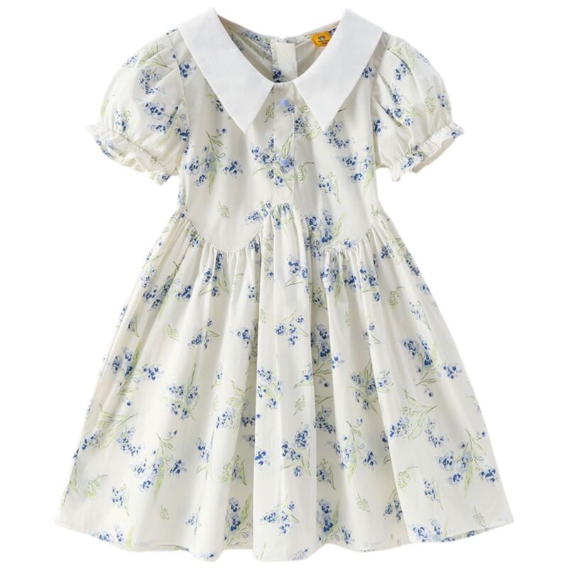 Wholesale 4-10Y Kids Girls Lapel Floral Puff Sleeve Dre