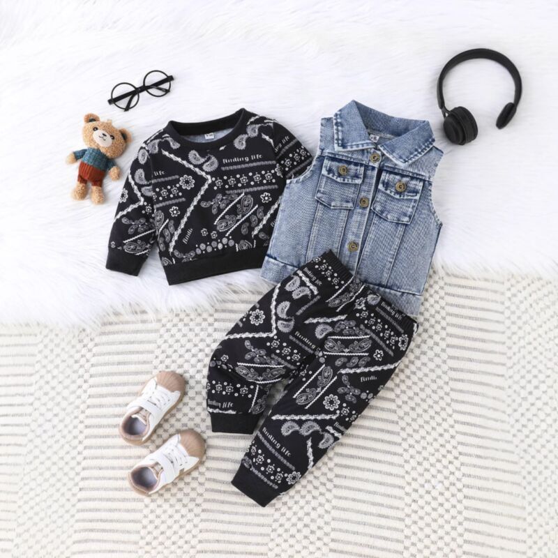 Wholesale 6M-3Y Baby Boys 3 Piece Outfits Denim Sleevel