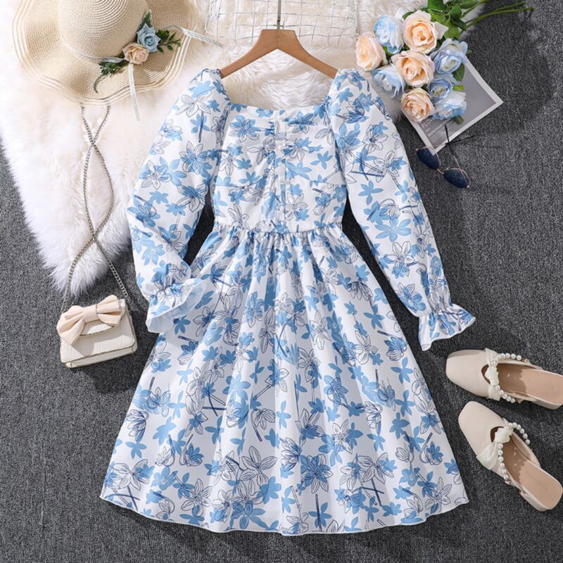 Wholesale 7-12Y Kids Girls Floral Smocked Long Sleeve D
