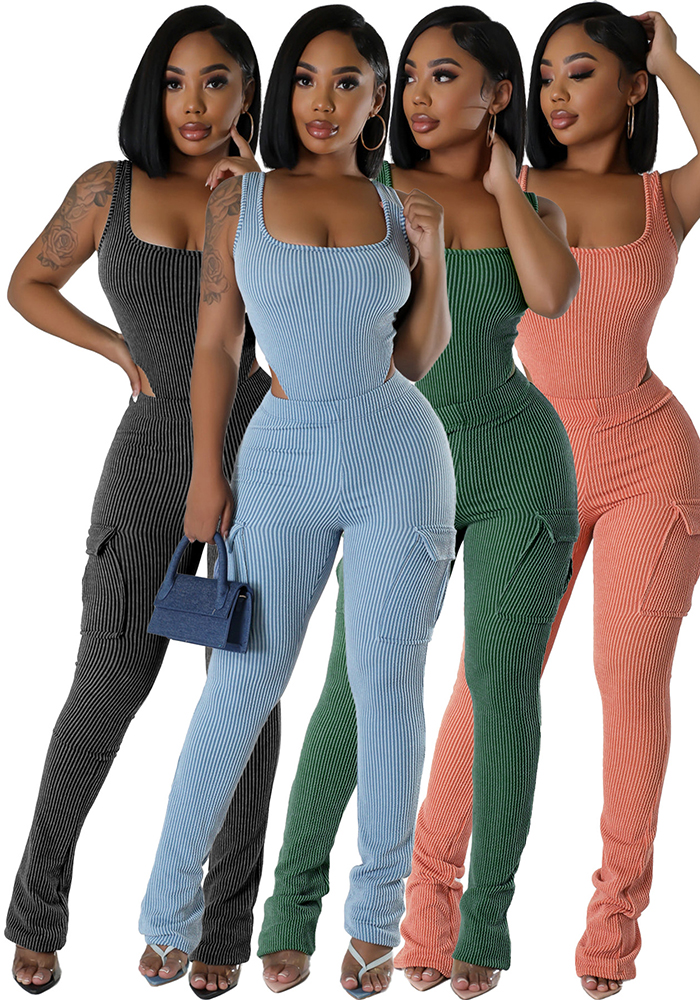 Women Round Neck Sexy Sleeveless Crop Top and Pants Two Piece Set