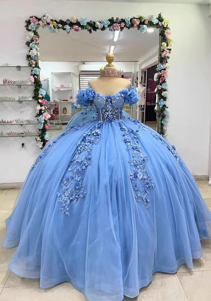 Women colorful off-the-shoulder appliqué formal party dress with tulle appliqués(Processing time need 3-6 days)