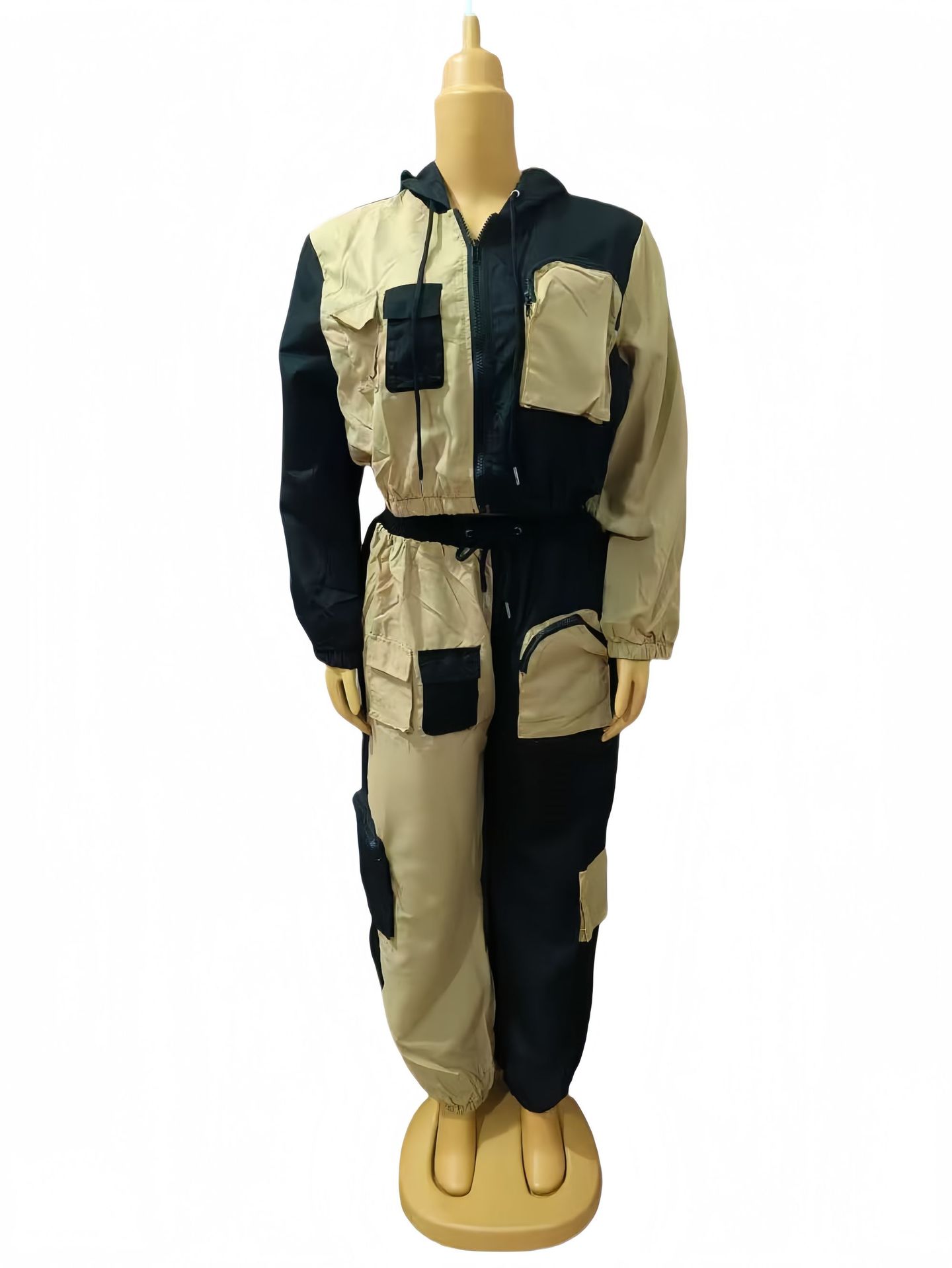 Women’s Fashion Casual Contrast Color Pocket Top Pants Two-Piece Set