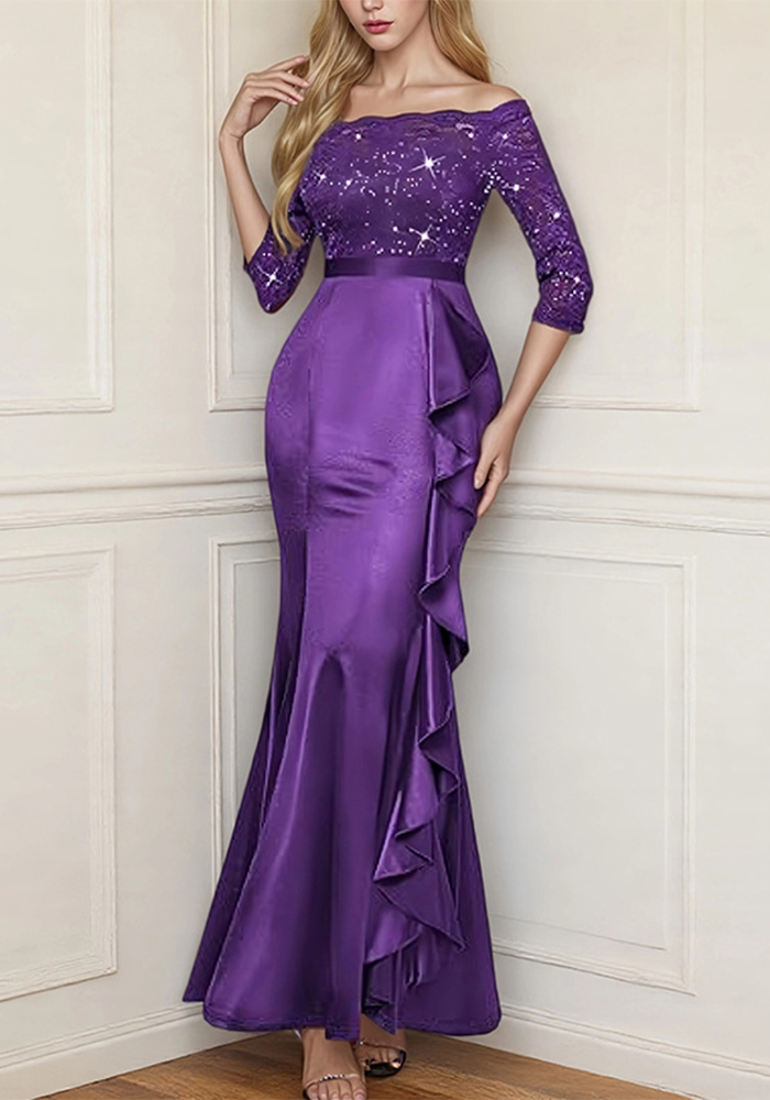 Casual Off-Shoulder Sexy Hollow See-Through Mesh Ruffle Bodycon Dress Set