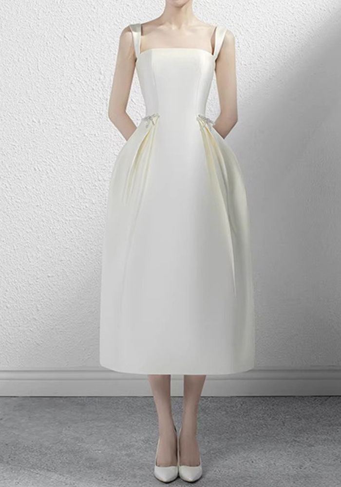 Women French White Satin Formal Party Birthday Party Strapless Evening Dress(Processing time need 3-6 days)
