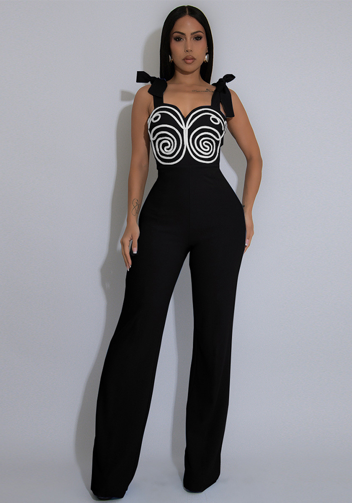 Sexy V-Neck Tie Low Back See-Through Jumpsuit with Long Pants for Women