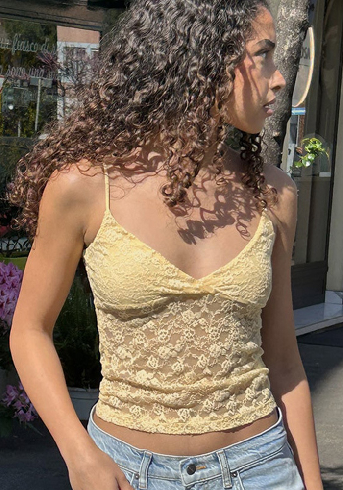 Women Sexy See-Through Lace Patchwork Solid Camisole