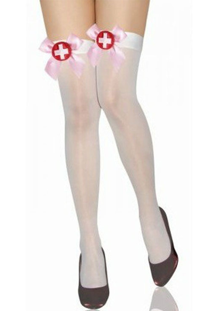 Women Sexy Stockings Over-the-Knee Thigh Socks Bow Cross Fishnet Stockings Nurse Stockings
