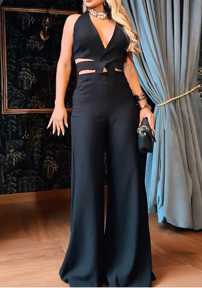 Sleeveless Strappy Wide-Leg Solid Color Slimming Jumpsuit for Women
