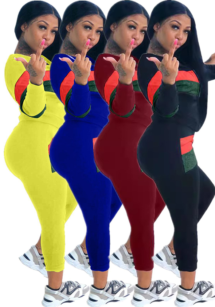 Women’s Sexy Fashion Long Sleeve Color-Block Two-Piece Pants Set