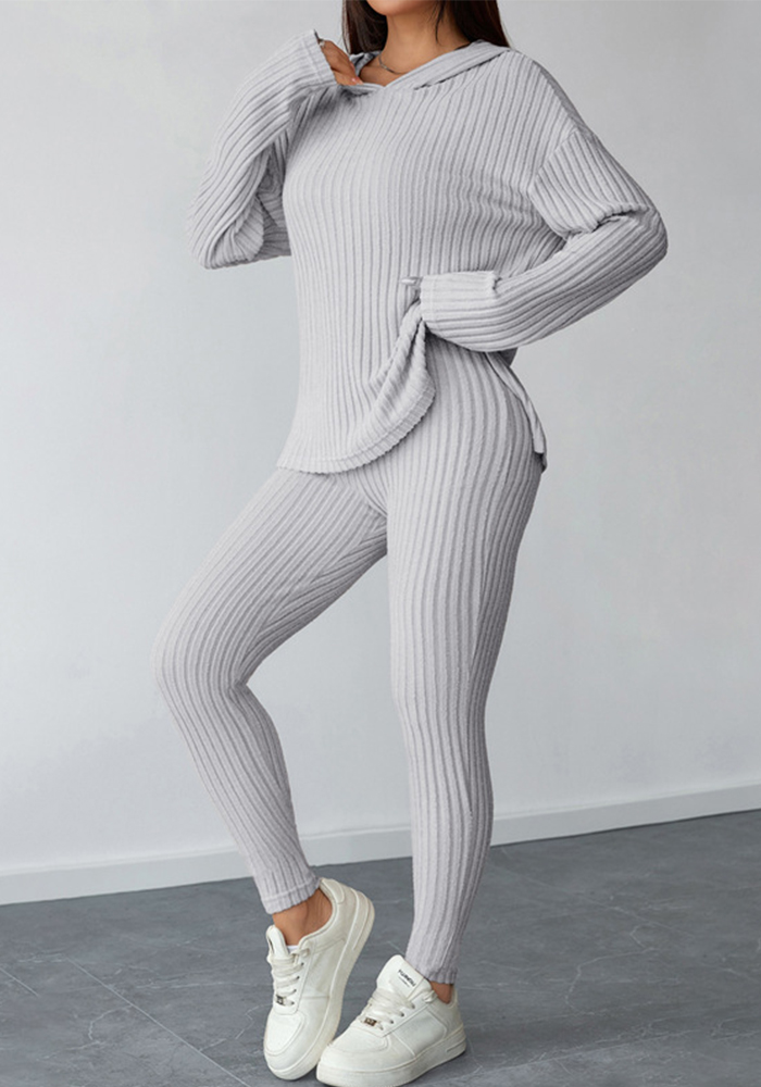 Women Autumn/Winter Ribbed Patchwork Casual Top and Pant Two-Piece Set