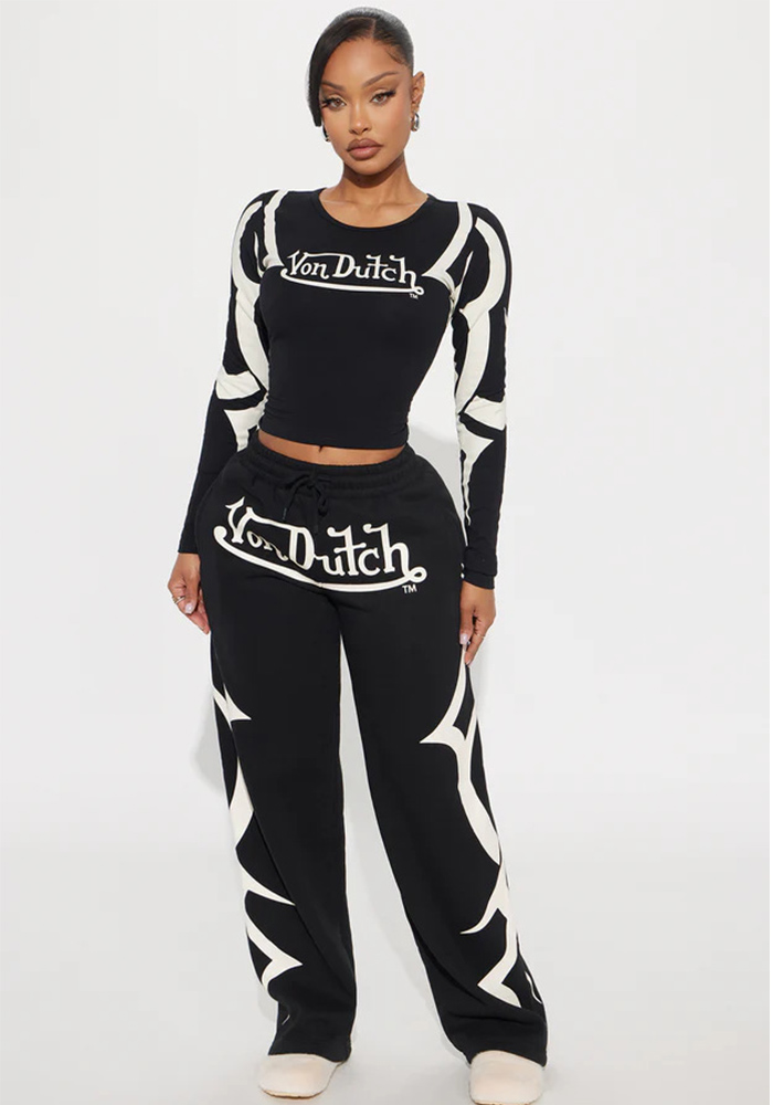 Women’s Autumn/Winter Casual Sporty Print Color-Block Fashion Two-Piece Pants Set