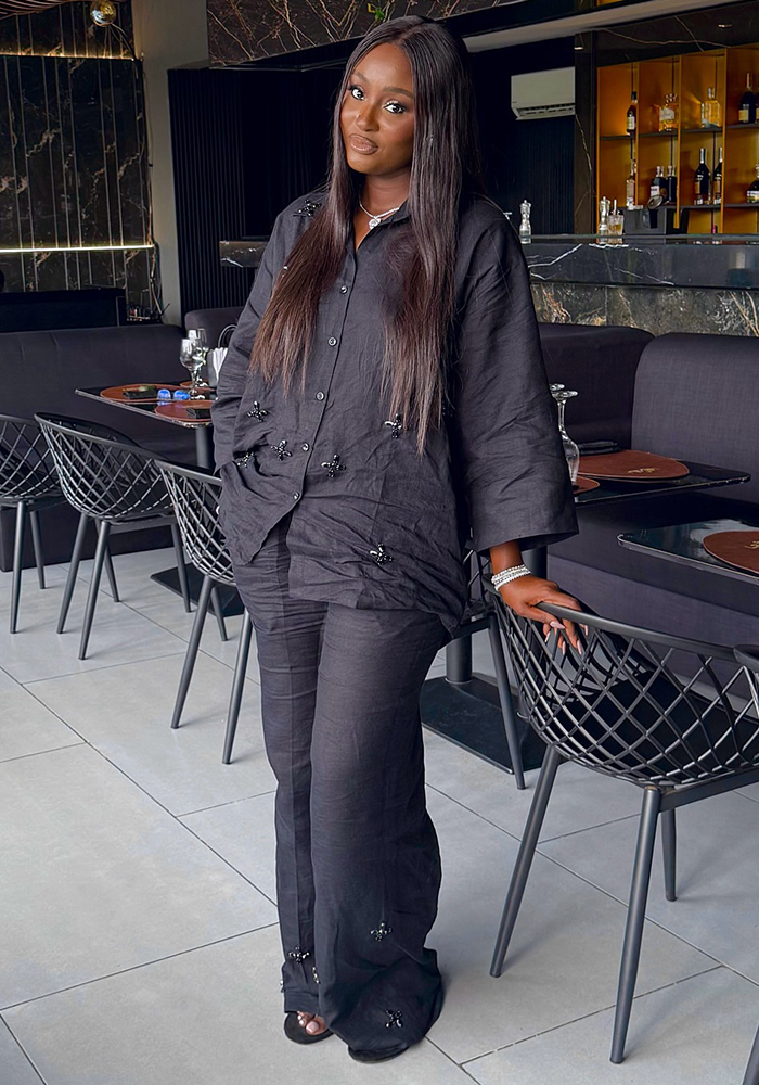 Women’s Fashion Puff Sleeve Crop Top + Pearl Embellishments Wide-Leg Pants Set