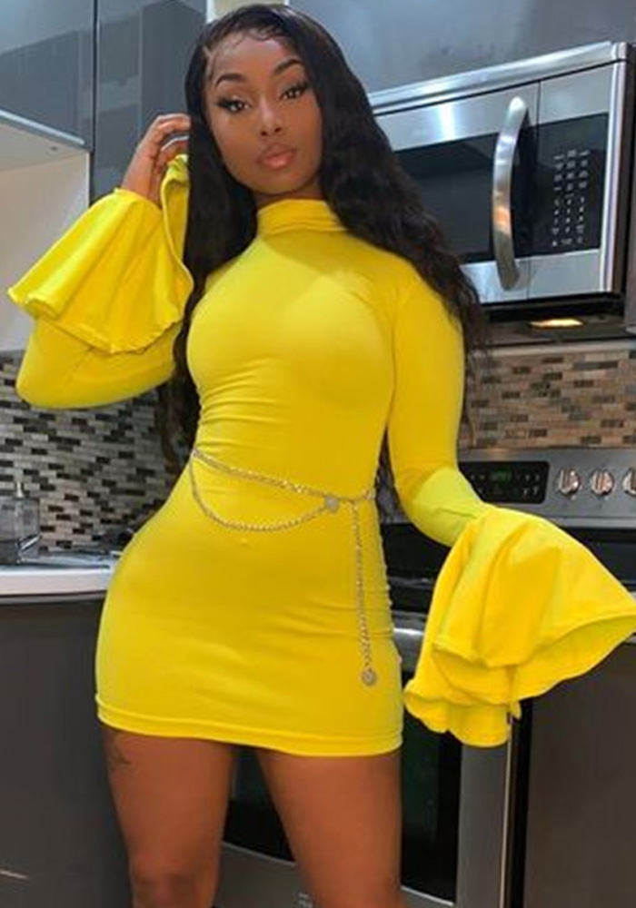 Women’S Solid Color Sexy Flare Sleeve Dress Nightclub Wear