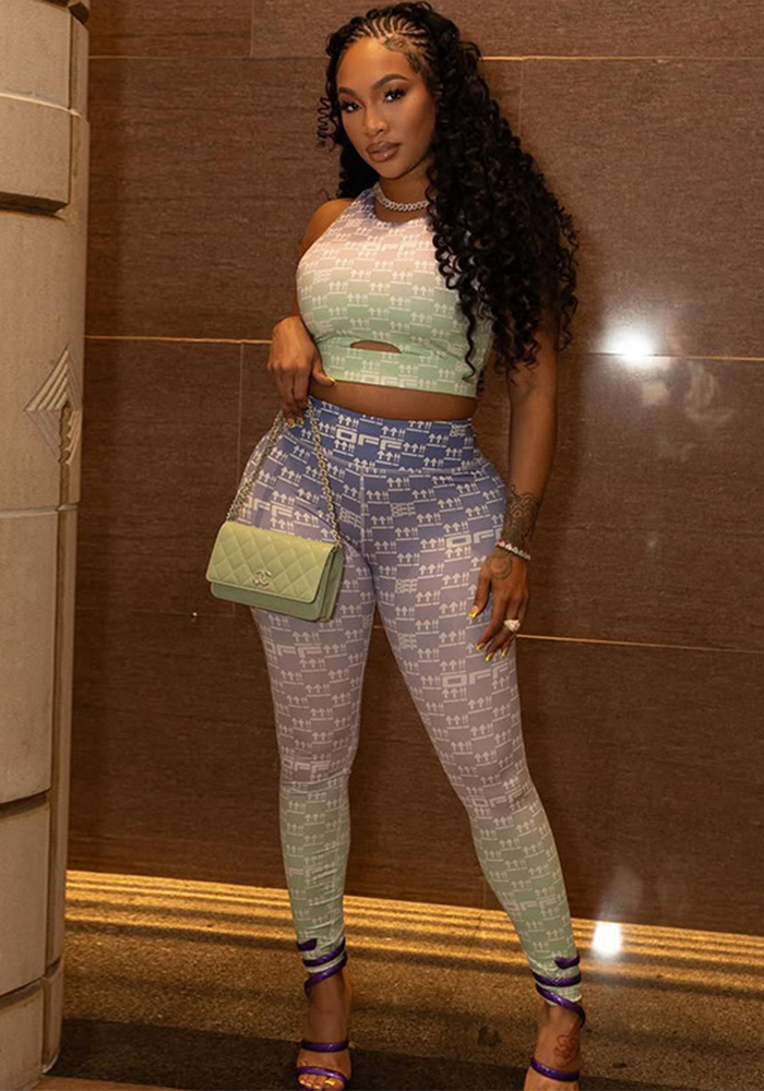 Women’s Sporty Hollow-Out Printed Slim-Fit Pants Set Tank Top & Leggings