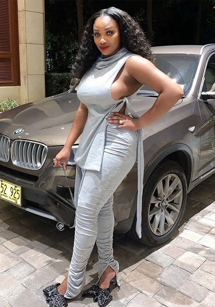 Women’s Spring Summer Fashion Sexy Solid Side Lace-Up Two-Piece Pants Set