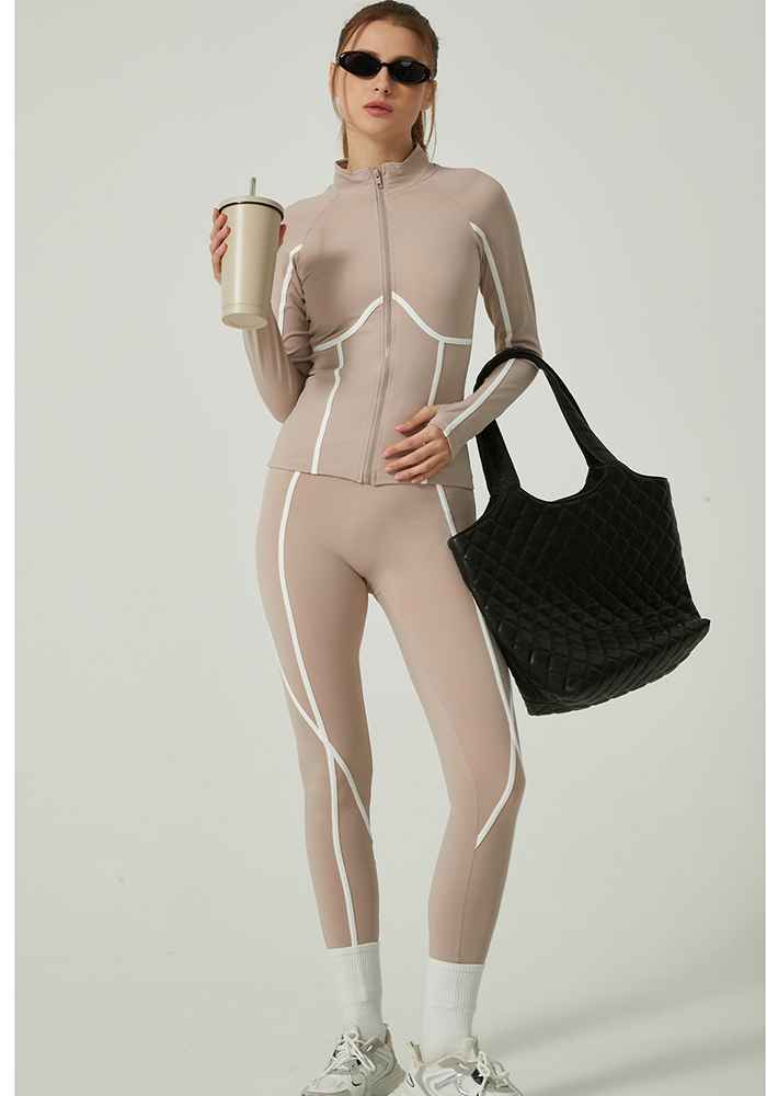 Yoga Set Women Casual Sportswear Autumn Winter Color Block Long Sleeve Jacket Pants Yoga Suit